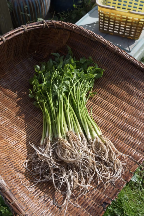 宮城県名取市下余田地区の在来野菜、名取せり。 自家採種し全ての生産工程で、 農薬及び化学肥料を使用せず有機農業により生産しています。 栽培収穫は9月から5月くらいまで続いていきます。 美味しい部位や状況変化、価格変動もありますので、 月ごと別の出品とさせていただきます。 12月のせりは、「旬の盛り二歩手前」。 生殖生長から栄養生長に切り替わり、 じわじわ根に旨味を蓄えはじめます。 これから少しずつ寒さとともに美味しくなっていきます。 2019年3月東北食べる通信の学びから、 配送可能エリアを今までより少しだけ広げてみています。 今季は育苗不足による作付面積減少により、 極端に出荷制限しております。 ご了承ください。