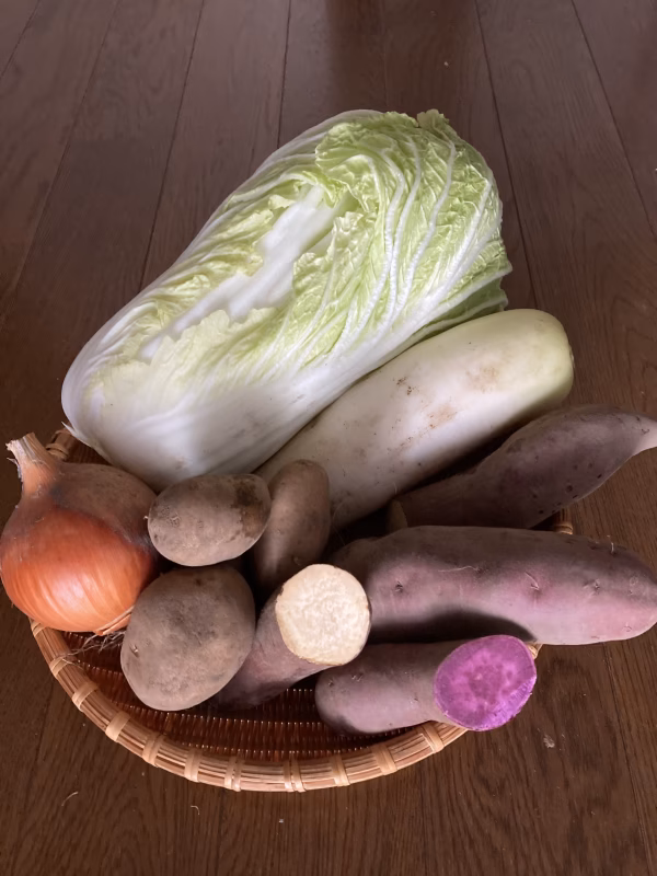 - 今、おまけに入る野菜の種類 カボチャ(カット)、じゃがいも、さつまいも、紅芯大根、大根(カット)、白菜(カット)、玉ねぎ 農家の自家用野菜です。形が悪かったり小さい傷などはお許しください。