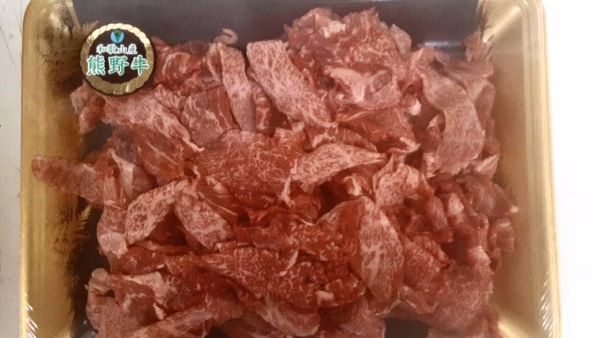 和歌山「天空の村」で長期にわたり我が子のように育てた熊野牛切り落とし500gです。