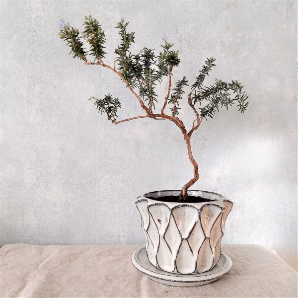 愛でながら食べられる、山梨育ちのローズマリーを盆栽にしました。