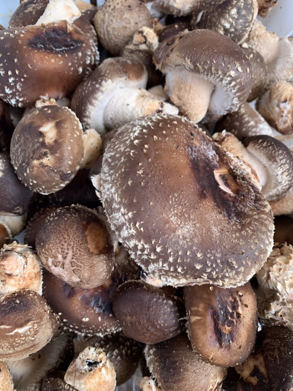 今回の出品はほだ木に挟まれて育ち傘や軸にダメージがあるもの、形が悪すぎるが中心です。