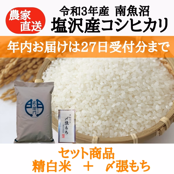 塩沢産コシヒカリ+〆張もち450gのセットです。