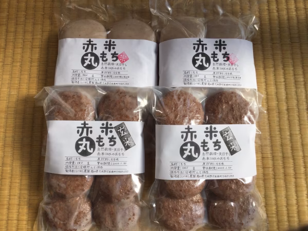 赤米100%の七分づき丸餅+玄米丸餅の、4パックセットです!