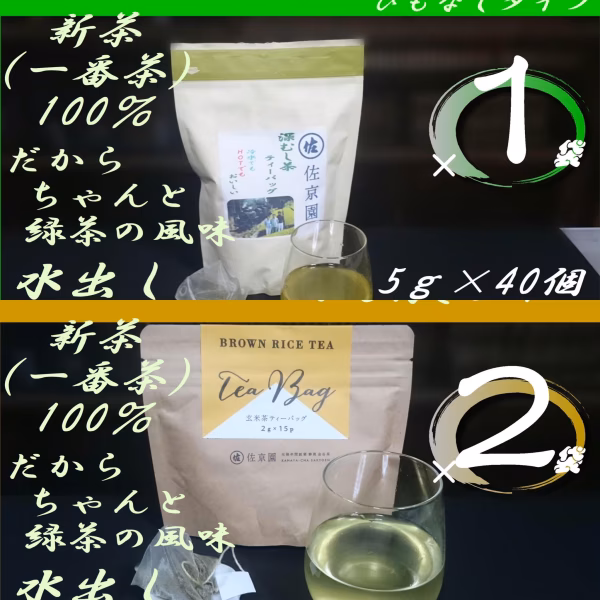 3. 緑茶ティーバッグ40入と玄米茶ティーバッグ2袋のセット