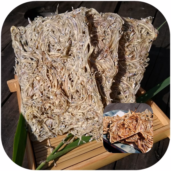 早朝水揚げされた鮮度抜群の状態で生から熨して畳状にし、天日干しにしました。サッと炙っても、そのままでも⤴ 酒の肴に❗ 最高です。