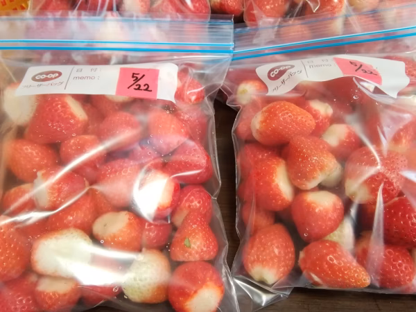 さがほのかの冷凍イチゴです。大粒くんから小粒ちゃんまで色々入ってます。そのまま、いちごミルク、スムージー、ヨーグルトなどにすぐにお使いできます。500g×4袋です。ジップロックに入れてクール冷凍便で発送します。