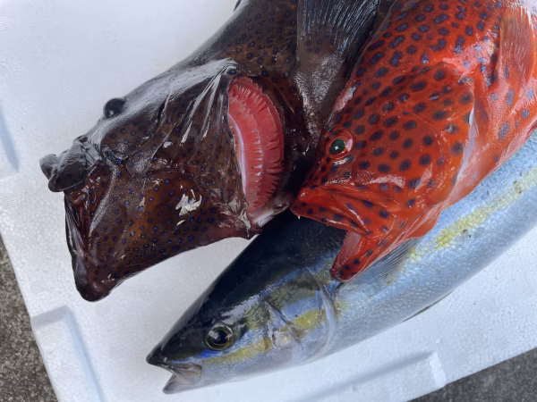 素潜りでの魚突きで捕獲しています。常に頭、エラ付近を狙うように意識していますが、体に撃つ事もあります。