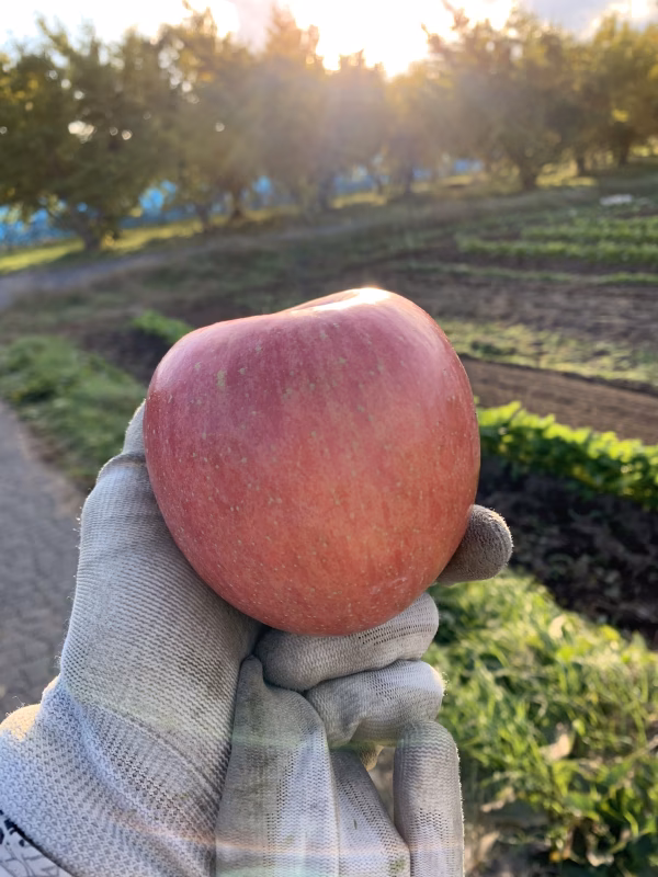 寒暖差の激しい中、たくさんの雪解け水で元気に育ち、実が引き締まり、甘みの乗った、香り豊かな「のろまんふじ」♪