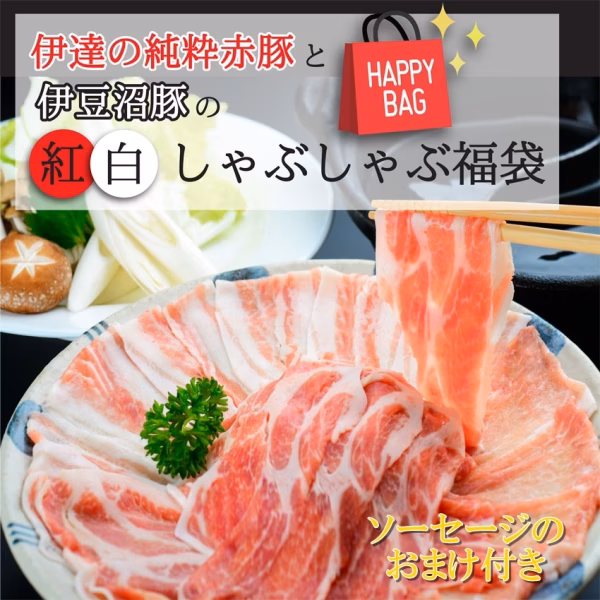 指定農場で育てられた「伊達の純粋赤豚」と「伊豆沼豚」をしゃぶしゃぶ用にスライスした特別セットです。赤豚は毛色が赤いので「紅」。伊豆沼豚は白い肌なので「白」。これをおめでたい紅白に見立てて、ポケマル限定の福袋をご用意しました。全部で1.1kgのお肉をしゃぶしゃぶ用(約1.5ミリ厚)にスライスしてお届けします。ご注文いただいた方にはフランクフルトソーセージ(3本入×1P)をプレゼントします。紅と白の食べ比べをお楽しみください!