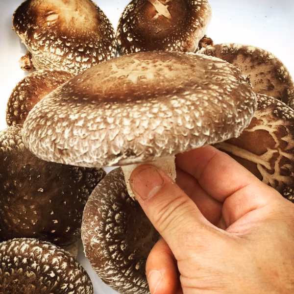 写真の通りのどっしりさ。肉厚感も大きさも抜群のクォリティだけに、食べ応えが違うんです!!通常のブルースファームのしいたけは開ききっていないものを収穫していますが、今回はよく開いた状態です。見応えも抜群なのでギフトにもぴったりです。