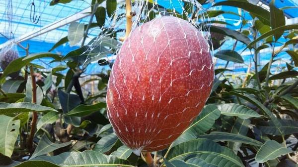 南国奄美の加計呂麻島より、とろ~り甘い完熟マンゴーできました!!『樹上完熟』とは?マンゴーは完熟すると枝から実が離れます。それを待って自然にネットの中にポトリと収まった果実だけを収穫しています。