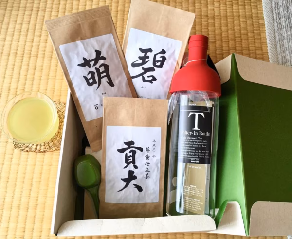 杉山貢大農園の芽重型仕立茶の「貢大・萌・碧」&フィルタインボトルのギフトボックスです☆