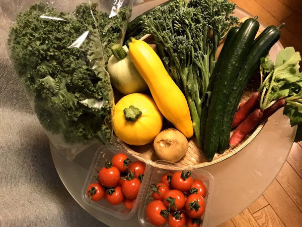 四季折々の旬のお野菜を厳選して、80サイズの箱にたっぷり詰めてお届けします。
