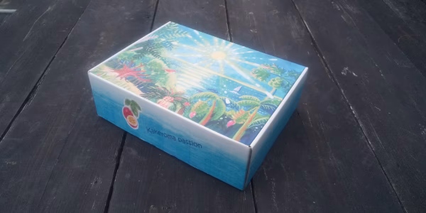 カケロマトロピカル農園では、所属する「瀬戸内町パッションフルーツ生産者組合」で、厳しく決められた色・キズ・重さなどの基準をクリアしたもののみをブランドパッションフルーツ「瀬戸内パッション」として決められた箱で出荷しています。