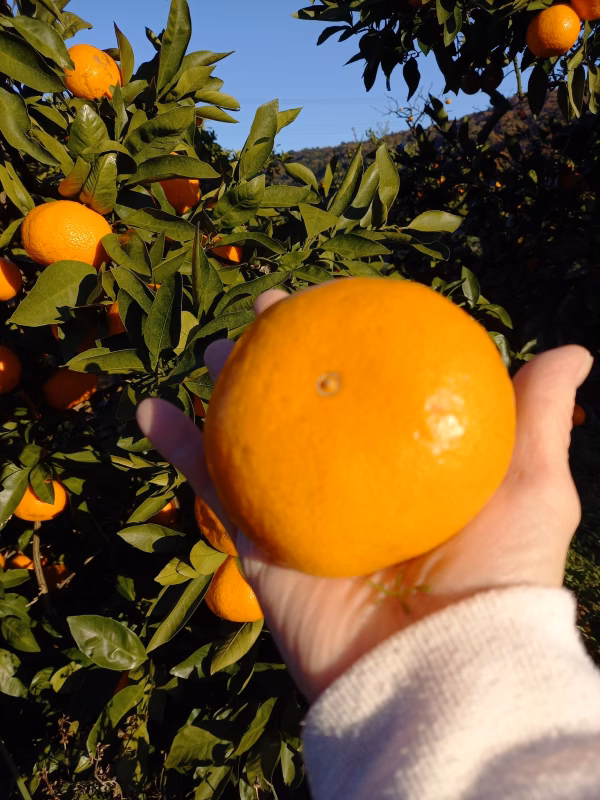 女性の方の手のひらにのる位の大きさがみかん1個の大きさです。