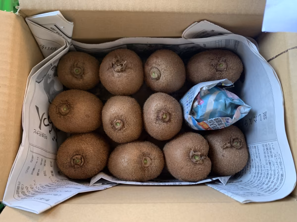 * キウイフルーツは、エチレンガスを出さないため、自分では熟しません。リンゴやバナナなどエチレンガスを出すものを一緒に袋へ入れてくださいね。