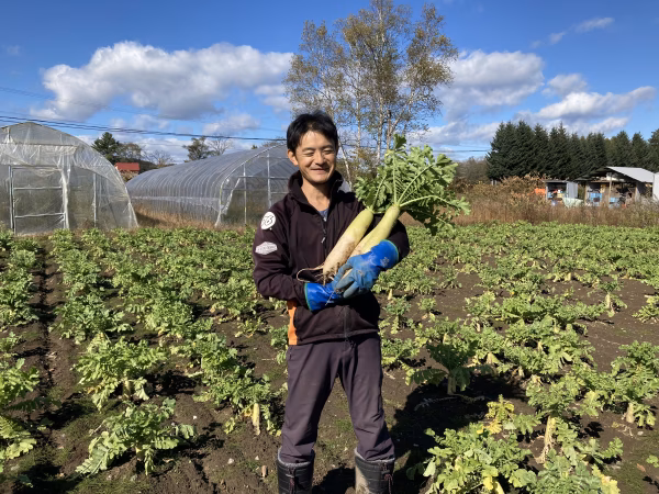 <味> 気温が下がってきた秋に収穫した青首大根ですので、上の青い部分は甘みが強く、サラダや大根おろしにおススメです。大根おろしは胃の消化を助けてくれるので、特にお肉や揚げ物との相性バッチリ!大根おろしとお肉を交互に食べるのが一番いいです。胃もたれや消化不良を防いでくれます。下の白い部分はしっかり辛みがありますが、火を通すことで辛みが旨みに代わって、とっても美味しい煮つけになります。食物繊維も豊富で、腸の消化吸収も助けてくれます。煮つけやお鍋で身体を温め、おなかの調子も整えて寒い冬を元気に乗り切ってください。皮もむかずぜひ大根丸ごと一本の栄養を摂ってください。 お野菜のご到着は、発送から2日後のご到着予定となります。 <栽培のこだわり> FF農法は『身体に悪いものは使わない!』 食べて頂く方に心から喜んで頂きたいという想いから、肥料・農薬・堆肥などの資材を使わず(有機肥料や動物性・植物性のたい肥も施用していません)、お野菜を手掛けています。心と身体に効くエネルギーの高いお野菜で、作る人も食べる人も元気に!未病を防ぎ、免疫力を高め病気に強い身体作りをサポートします。 <産地の特徴> 北海道十勝地方は、日本の中でも日照時間が特に長く、さらに昼夜の寒暖差がしっかりあって、うま味や甘み・栄養素やミネラルをとてもため込みやすい地域です。 <品種など> にじいろ農園では可能な限り自家採種をし、自分たちや地域に合った種で毎年命を繋ぎながら、元気に育つ美味しいお野菜を目指しています。 しかし、すべてのお野菜の自家採種はまだ出来ておらず、固定種や場合によっては一般種子を購入する場合もありますので、お野菜のご注文時にお問い合わせ頂ければと思います。また、情報の公開に努めて参ります。 年々自家採種出来る様になったお野菜が増え、今では15種類ほどのお野菜さんの種とりを行っております。