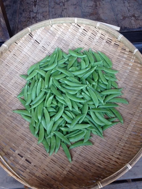 昨年から植え付けている「ニムラサラダスナップ」という品種は、ほっそりしており柔らかく、さっと湯がいてマヨネーズで食べるのが一番です。