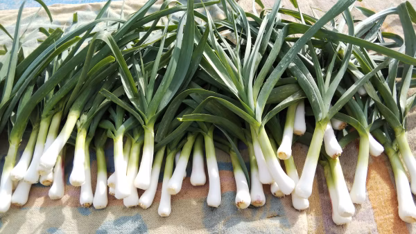 にんにくになる前に収穫したもので、まだ小ぶりですが葉も茎も全部食べられます。炒めると、にんにくの香りが食欲をそそります😃