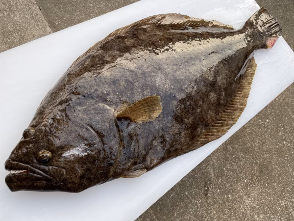 今朝の素潜り漁で海に潜り銛で一発で仕留めたヒラメです。身を傷つけないよう頭を狙って突きました。