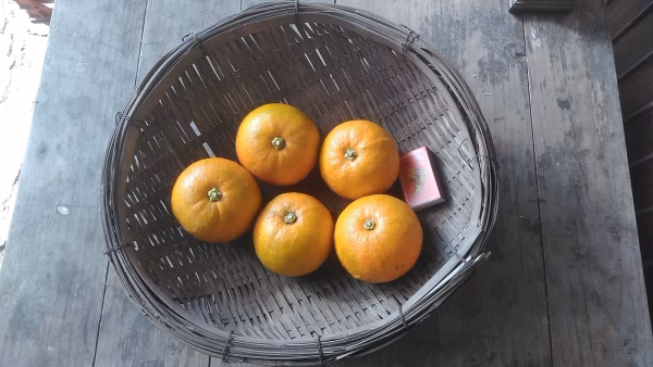 農薬や肥料を使わずに育った橙(だいだい)です。絞った果汁を酢としてお使いください。果汁はさわやかなさっぱりとした甘さが特徴です。