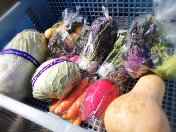 - ーーーーーーーーーーーーーーーーーーーーーーーーーーーーーーー 11月のセット内容例: ・ルッコラコルチバータ ・オレンジミニ白菜 ・紅法師水菜 ・関白大根 ・ハーモニーイエロー人参 ・あやめ雪かぶ ・九条ネギ ・紅はるか ・白柄里芋 ・ディル (※収穫状況により異なります。) ーーーーーーーーーーーーーーーーーーーーーーーーーーーーーーー