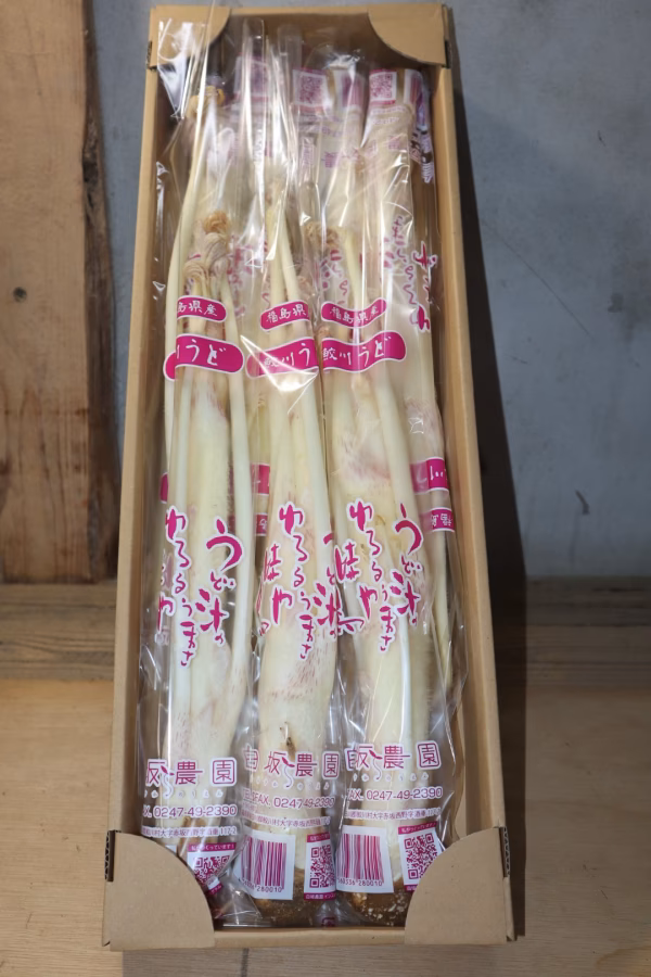 鮫川うどは瑞々しくシャキシャキとした歯触りと爽やかな香りが特徴です。アクがなくサラダや炒め物などどんな料理にも合います。