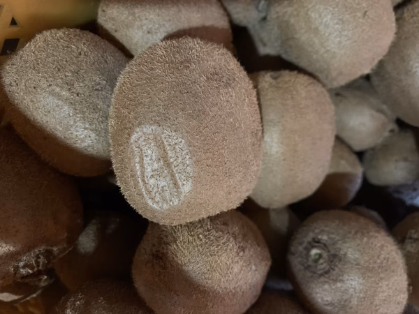 当園では、11月中旬から約2週間でキウイを収穫し、冷暗所で保管しております。 収穫後、日が経つにつれ、少しずつキウイから水分が抜け、シワが入ってきます。 (このシワ入りキウイがまた、一段と濃厚で美味しいのです。)
