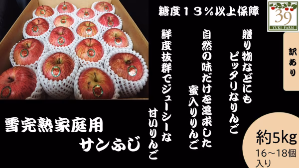 糖度13%以上保証家庭用サンふじ5kg「16個~18個入り」