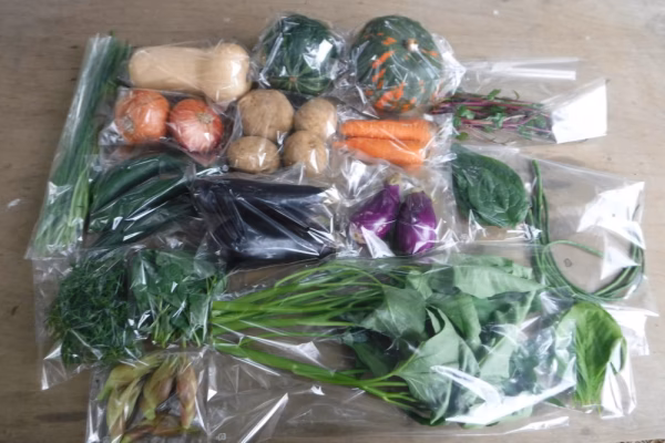 チンゲン菜、ターサイ、カブ、唐辛子、青唐辛子、二十日大根、ほうれん草、アイスプラント、人参、ジャガイモ、さつまいも、ふきのとう、キャベツ、ブロッコリー、小松菜、コールラビ、菜の花、ルッコラ、長ネギ、レタス、かつお菜、高菜、のらぼう菜、からし菜、いちじく、みかん,etc