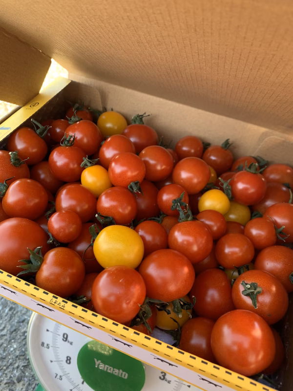 お待たせしました‼︎ 今シーズンもミニトマト&トマト販売開始しました‼︎ 今シーズンは、中玉トマトを中心にいろいろなトマトをミックスしてお入れしていきます。 今回はミニトマト&中玉トマトのミックスです。 宅急便コンパクトでお届けします。 ミニトマト ・千果(赤) ・イエローミニ(黄) 中玉トマト ・フルティカ ・シンディースイート 初どれトマトですのでまだまだ味はこれから、といった感じです。季節ごとに変わっていくのが楽しみですね。 五十年以上続くトマト農家の昔ながらの土で作ったトマトたちです。全て手作業で、トラクター以外は使っておりません(途中で壊れたので大変でした) 野菜ソムリエさんにて2年連続銀賞をいただきました。 加工品部門では、トマトジャムとトマトジュースが銀賞をいただきました。 最近ではお笑いのEXITさんにうちのトマトを食べてもらいました! 甘いトマトに飽きた方はぜひ食べてみてください! 【発送の遅延について】 今年は主人が調子がいい日と悪い日があり、まともに動ける日が限られているので私ひとりで梱包作業、ハウス作業等をしております。 順番にお送りいたしますが、メッセージが夜まで確認できなかったりとご心配をおかけすることもあるかと思います。 気長に待っていただけるとありがたいです。よろしくお願いします。