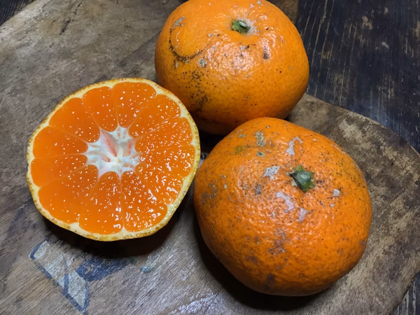 写真のように皮に難があるみかんです。キズやシミなどがあります。