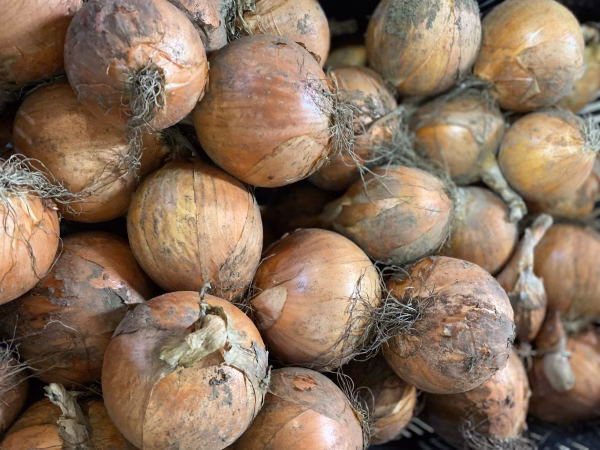 ・冬まで貯蔵できる品種の玉ねぎは、12月頃まで貯蔵できますが、芽止めの薬を使っていませんので、芽が出てきますがご了承下さい。甘くて柔らかい玉ねぎです!