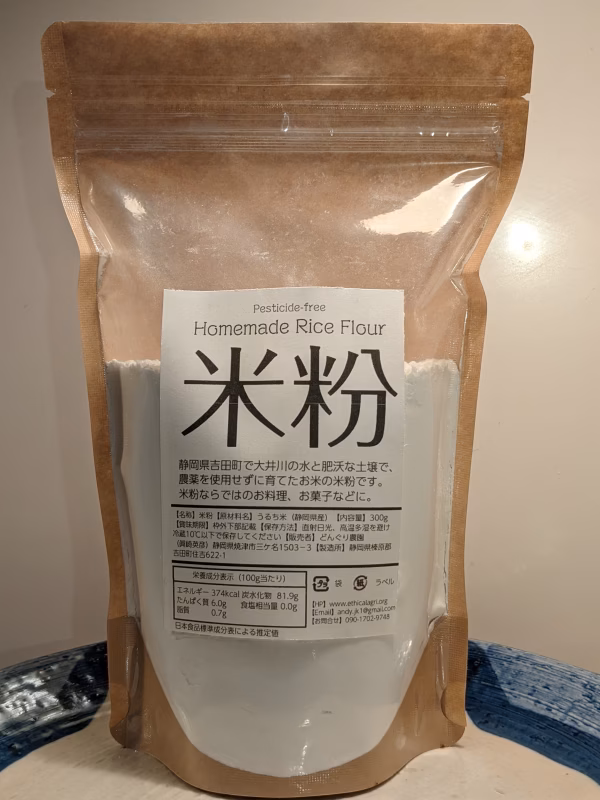静岡県吉田町のどんぐり農園が、大井川の伏流水と肥沃な土壌で、「農薬を使用せず」にこだわって育てたお米で作った米粉です!