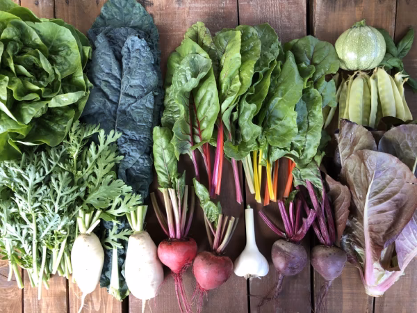 十年も百年も自家採種を続けられる作物の品種のことです。百年前や千年前の人類が現代に届けてくれたものでもありますね。手間を惜しまず技術を磨き、知識を深めて採種は続いてきました。人類の偉業です。生を支えてきた食卓に欠かせない作物は、種子から生まれます。芽生えて育ち、花を咲かせて実を熟し種子となり。その間の気候風土は遺伝子に記憶するそうです。芋だったり、米や豆のように種そのものを食べたりもします。作物と風土と、そして地球とを敬って、市場から減りつつある固定種野菜の魅力、旬の品目をお届けします。