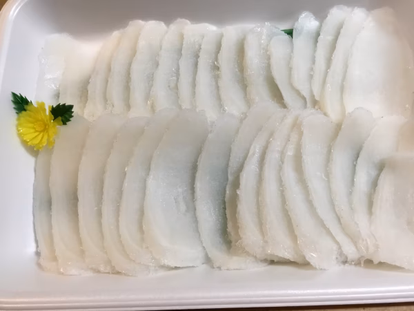 獲れたての新鮮な「たこ」を薄くスライスし、しゃぶしゃぶ用にしました。