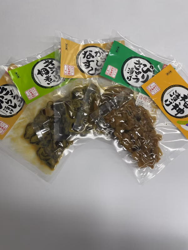 売れ筋NO1の茄子の辛子漬けや漬物コンクール入賞作品のぴりきゅう漬を含めた5種類のセット商品です。