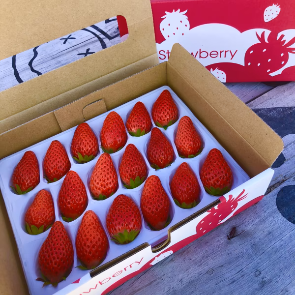 滋賀県産いちご農園直送! 厳選完熟いちご 18粒入りです。 -------------------------------- ※熨斗対応しております。 ※熨斗や到着の指定日時がありましたら、必要事項内にご記入下さい。対応可能です。 -------------------------------- 特別なイベント、ご家族、友人へのプレゼントや ちょっと贅沢なデザートにどうですか? 下記の5種類の中からその時期に一番美味しいいちごをご自宅にお届けします(^^) Mixになる場合もあります。 ★あきひめ★ 長めの円錐形をしていて、皮膚は柔らかめ。酸味が少なくジューシーで甘いイチゴです。酸味が少ないので子どもに大人気です。 ★かおり野★ 名称にも「かおり」がつくほど上品な香りがします。果肉は比較的に固めてですが、果汁が多く酸味が穏やかでさっぱりとした甘みを感じるイチゴです。 ★紅ほっぺ★ 酸味がやや強く本来の甘酸っぱさと深い味わいを堪能出来る品種です。 名前の由来にもなっている「紅ほっぺ」はほっぺが落ちるほど噛んだときの感触から来てるそうです。 ★よつぼし★ 果肉しっかり、濃厚で甘味と酸味のバランスが抜群で濃厚味です。 ★おいしーベリー★ 濃い赤色で果肉がしっかりしていてビタミンCたっぷり、濃厚さと酸味が程よく一度食べたらやみつきになります(^^) ★発送について★ こちらは特殊なな梱包素材を使用しております。 「ゆりかーご」と言って新発想の宙吊り包装でイチゴを守る新型イチゴ容器です。 やわらかいフィルム素材で、個々のイチゴ形状にピッタリフィット。緩衝面積拡大で表面の損傷が軽減します。 宙吊り構造なので、輸送中の振動を緩和、スレ傷を防止します。 伸縮性のある独自フィルムで、イチゴをホールドしながら衝撃を吸収します。 業界初のフィルム成形でイチゴをやさしく包みます。ゆりかーご独自の成形技術でフィルムをイチゴ形に成形しております。 なのでより新鮮で美味しいイチゴをご自宅で堪能出来ます(^^) -------------------------------- ※熨斗対応しております。 ※熨斗や到着の指定日時がありましたら、必要事項内にご記入下さい。対応可能です。 --------------------------------