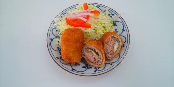 - 豚肉/卵/大葉、チーズ、梅肉、パン粉、小麦粉、塩、コショウ