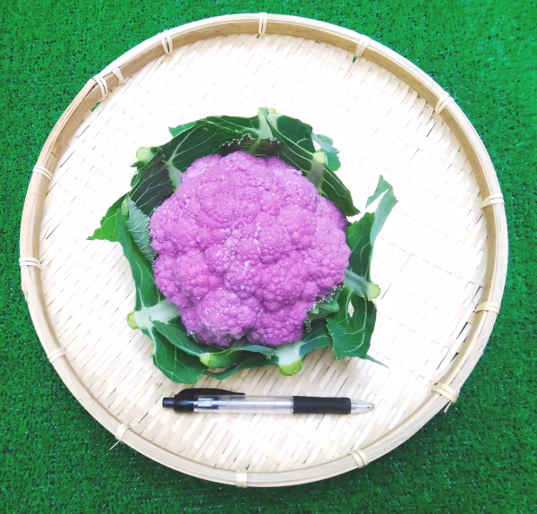 ホワイトカリフラワーについては、シーズン的に一部アントシアニン色素(紫色)の発生が出る場合が有ります。食味等には問題は有りません。