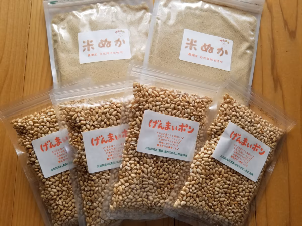 自然栽培米の米ぬかと玄米ポンのセットです。