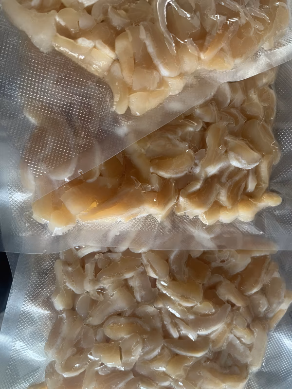 鮮度を下げないため、塩水で処理後、真空パックしております。そのまま冷凍しますと、変色または硬くなって味も下がります。ご使用の際は、自然解凍か冷水解凍、開封後は早めにお召し上がりください。調理される前は必ずザル等で水洗いし、ぬめりを取り除いてからお使いください。