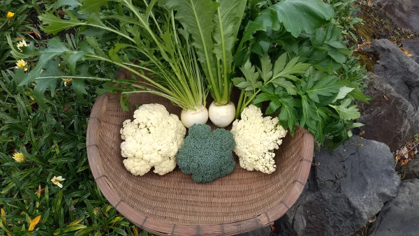 カリフラワー2玉+ブロッコリー1玉、あるいはカリフラワー1玉+ブロッコリー2玉(いずれか選択できます)。
