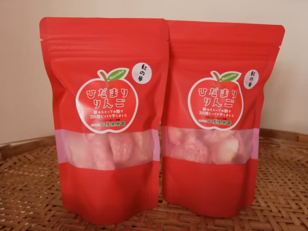 今話題の果肉の赤い品種、紅の夢を使用した干しりんごです。