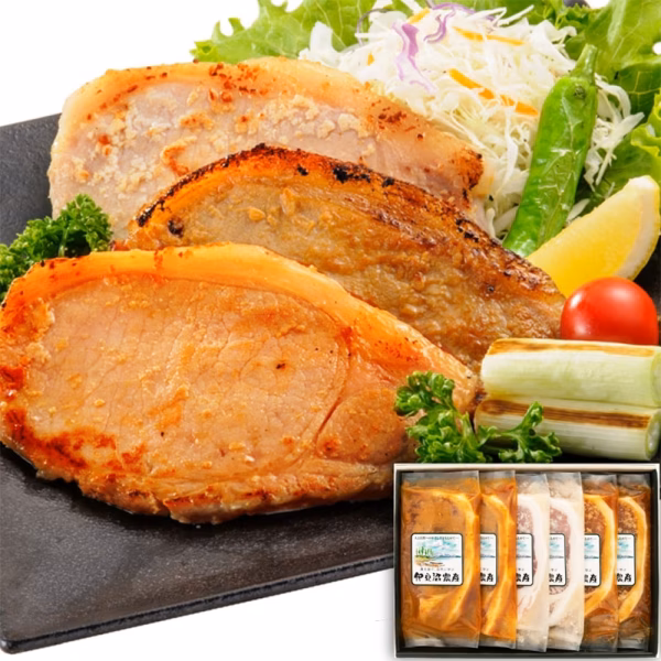 宮城県産のロース肉を、味噌・醤油・塩麹にそれぞれ漬け込み、発酵作用でしっとりやわらかく仕上げました。やさしい香りとコクが食欲を誘い、ごはんのお供にぴったり。冷蔵庫にて解凍の上、焼いてお召し上がりください。