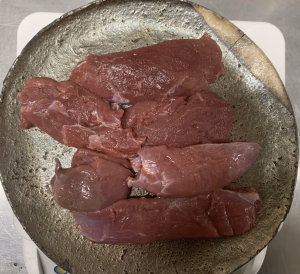 背ロースは鹿肉の中で最も美味しいと言われている部位です。モモ肉に比べて、柔らかく、筋もありません。しかし、1頭あたりに取れる量が少ないので、少々値段が高くなっています。背ロースは筋がないので、低温調理でのローストディアーや焼いてステーキにして食べるのがおすすめです。