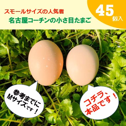 本商品は産み始め~比較的若めの鶏の産んだ小さめタマゴで、1個の重量は約40~58グラム程度になります。(多少の誤差はご容赦ください^^;)