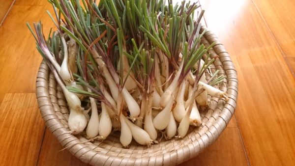 島らっきょうは、一般のラッキョウに比べると小ぶりで細長く、ネギのようなぴりっとした辛味と香味が特徴の沖縄の島野菜です。