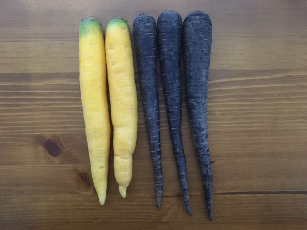 イエロー人参とパープル人参をセットでお送りします。