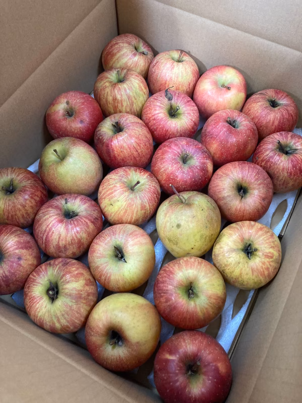 大きさが不揃いのため、実際には約6kg程度入っており、傷があったり、色むら・形が悪いものも含まれます。サイズもバラバラですが、栽培方法は通常のりんごと同じで大事に育てたものです。なお、実際の発送時には仕切りなどは使用せずバラ詰めになりますので、輸送中に傷がつく場合がございますが、予めご了承ください。